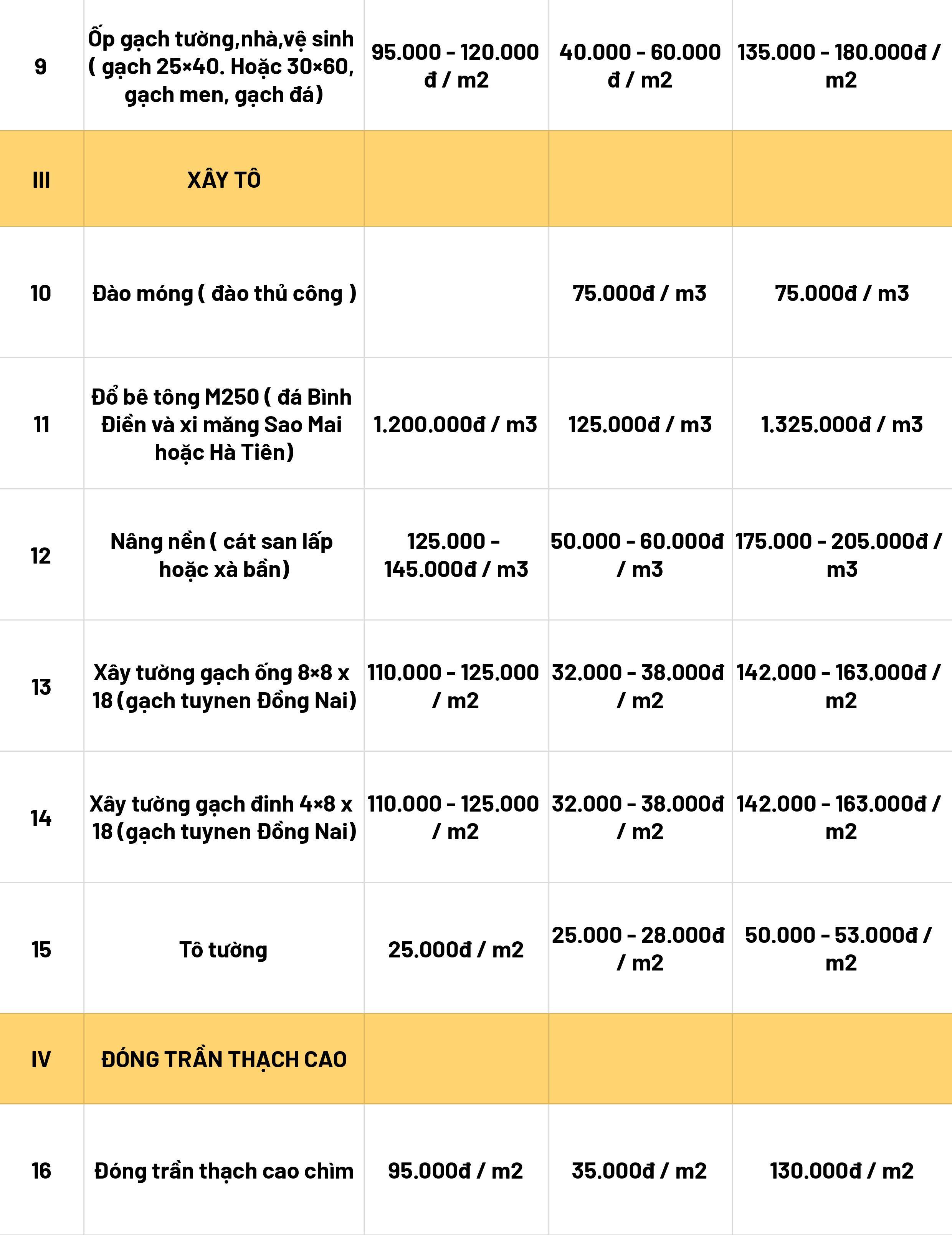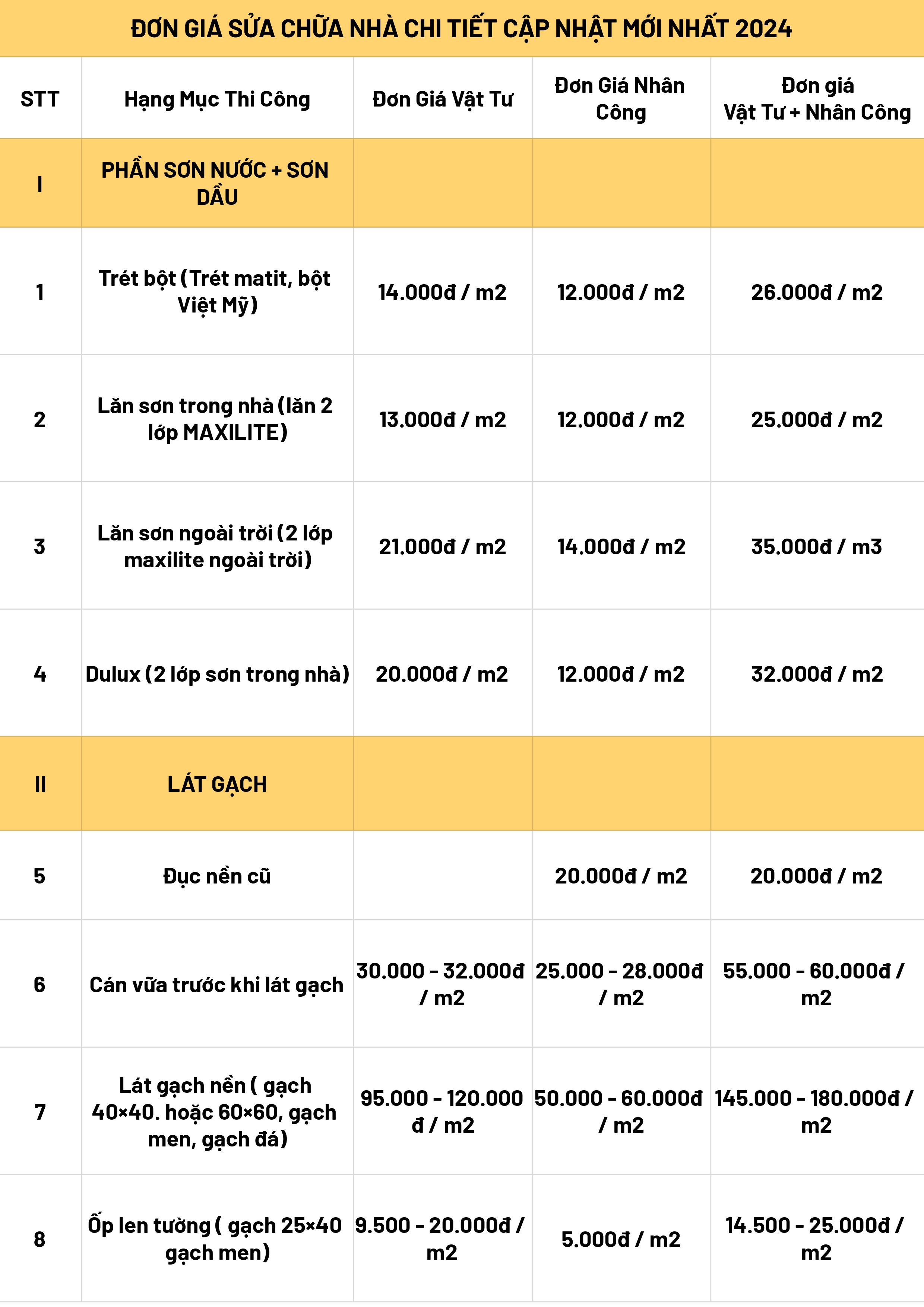 2. Bảng báo giá sửa nhà, cải tạo nhà cũ tại TP. Hồ Chí Minh 2024