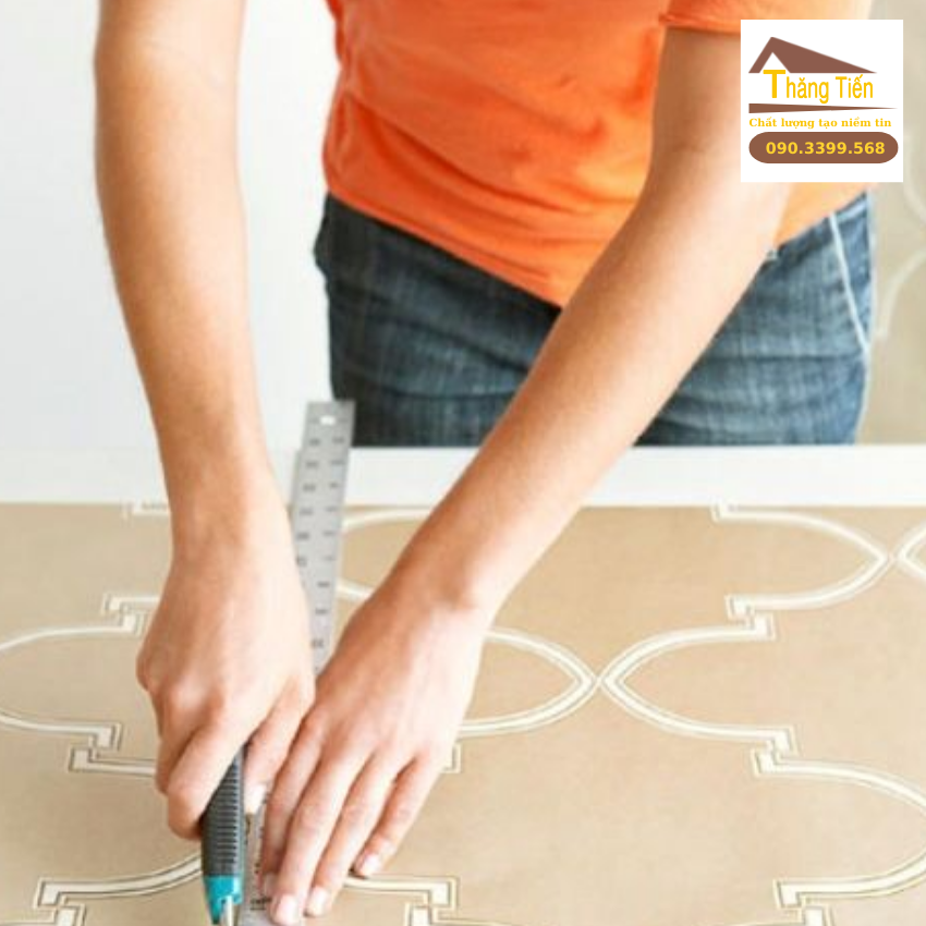 Tuy là một bước không quá phức tạp, thế nhưng không ít gia đình đã thất bại ngay từ lần cắt đầu tiên. Để việc cắt giấy được chuẩn xác nhất thì bạn cần đo đúng kích thước của bề mặt tường. Cụ thể đó là chiều cao, chiều rộng, chiều dài. Sau đó hãy cắt giấy đúng theo kích thước vừa đo, nếu được thì nên dư ra một ít. Điều này giúp đề phòng việc đo đạc trước đó không hoàn toàn đúng chuẩn. Ví dụ: Nếu tường nhà của bạn cao 3m thì bạn nên cắt giấy có số đo lớn hơn 3m một chút.