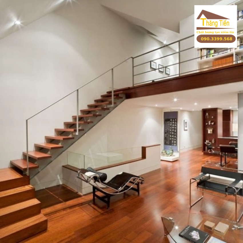Cầu thang chữ I là biện pháp khá thông minh để tiết kiệm và mở rộng diện tích. Khi sử dụng mẫu cầu thang này, bạn sẽ thấy phần diện tích trên cao và dưới đất sẽ không tốn là bao. Hơn nữa, đơn vị sửa chữa sẽ áp trực tiếp cầu thang với tường nhà, thay vì xây dựng nguyên chiếc cầu thang riêng rẽ. Việc tận dụng bề mặt tường nhà như thế này sẽ giúp cho không gian được mở rộng hơn, thoáng đãng hơn.