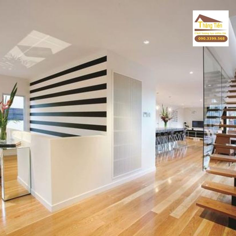 Về phần nội thất, các họa tiết ngang của các bậc thang bằng gỗ được lặp lại bởi các sọc đen và trắng trên tường tạo cảm giác cuốn hút cho ngôi nhà.