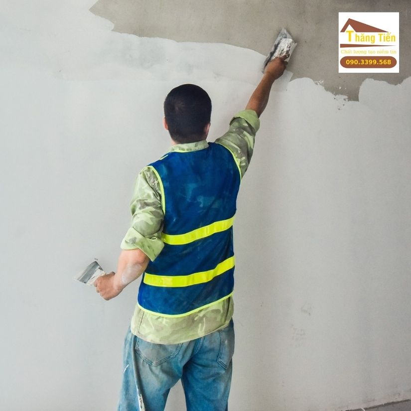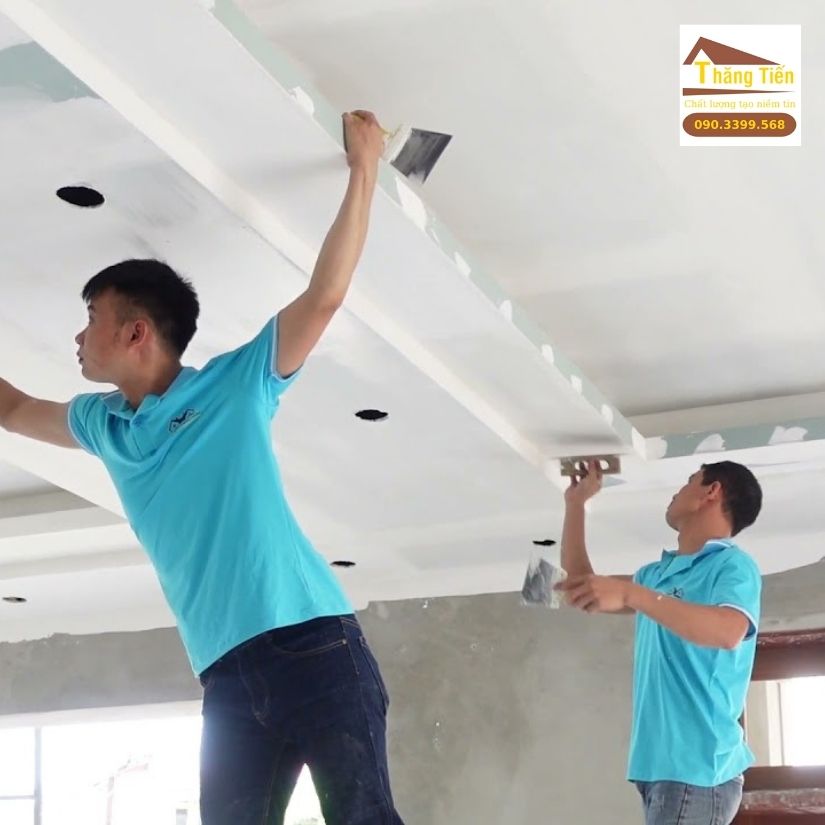 - Đối với nhà anh Hùng, Thăng Tiến thi công 2 lớp sơn lót. Thợ thi công của Thăng Tiến thực hiện sơn từ trên xuống dưới một cách đều tay để sơn không bị vón cục, đồng thời đảm bảo sơn phủ kín mặt tường.