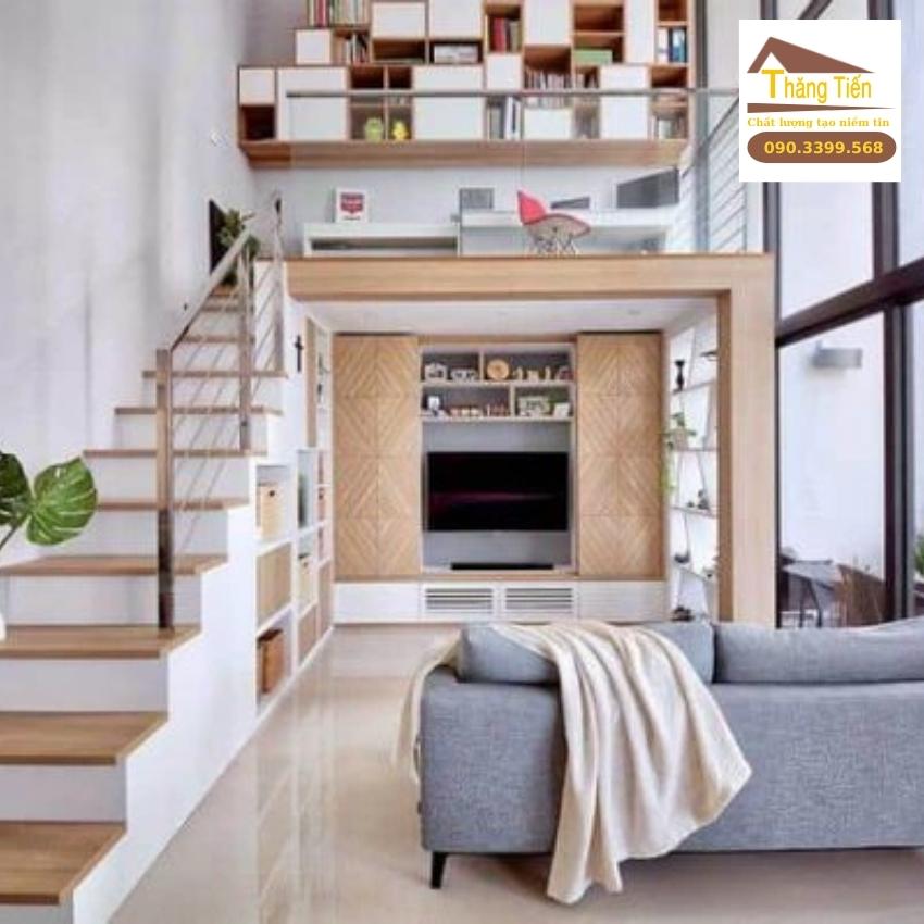 Ngoài ra để tận dụng tối đa không gian, cầu thang lên tầng lửng cần được bố trí nhỏ gọn. Một chiếc cầu thang đơn giản nhưng vẫn chắc chắn vừa rẻ lại vừa tối ưu về không gian.